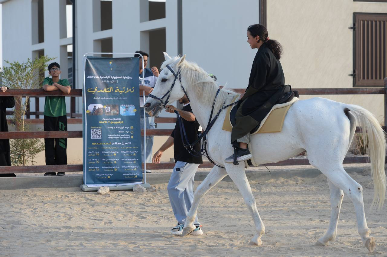 اختتم برنامج “ثلاثية التحدي” أسبوعه الثاني بحصة تدريبية مميزة في ركوب الخيل، شهدت مشاركة 34 ممارسًا، خاضوا تجربة فريدة في تعلم أساسيات الفروسية وفن التعامل مع الخيل.