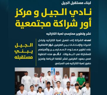 نادي الجيل يوقّع اتفاقية شراكة مع مركز أور الرياضيالإدارة25 أغسطس، 2025المركز الإعلامي – نادي الجيل انطلاقًا من رؤية المملكة العربية السعودية في دعم وتطوير مختلف الألعاب الرياضية، وتعزيزًا لمبدأ التكامل ... اقرأ أكثر