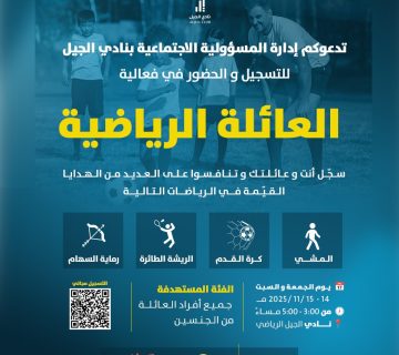 المركز الإعلامي – نادي الجيل نفّذت إدارة المسؤولية الاجتماعية بنادي الجيل برنامجها المجتمعي “العائلة الرياضية” يومي الجمعة والسبت 14–15 نوفمبر ... اقرأ أكثر