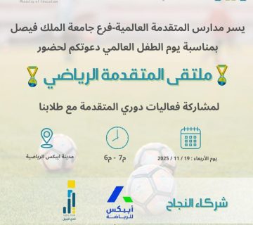 نادي الجيل يشارك أطفال الأحساء احتفاءهم بيوم الطفل العالمي عبر ملتقى المتقدمة الرياضيالإدارة20 نوفمبر، 2025بمناسبة يوم الطفل العالمي، نظّمت إدارة التسويق بنادي الجيل بالتعاون مع مدارس المتقدمة العالمية ومركز إيبيكس ملتقى المتقدمة الرياضي، في ... اقرأ أكثر