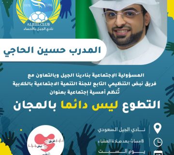 أقامت إدارة المسؤولية الاجتماعية بنادي الجيل وبالتعاون مع فريق نبض التنظيمي التابع لجمعية التنمية الاجتماعية بالكلابية ورشة عمل بعنوان “التطوع ... اقرأ أكثر